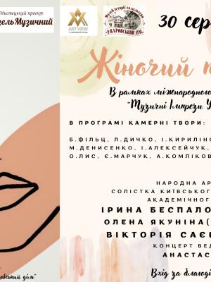Народна артистка України, солістка Київського національного академічного театру оперети Ірина БЕСПАЛОВА-ПРИМАК (сопрано)Олена ЯКУНІНА (фортепіано)Вікторія САЄНКО (фагот) Ведуча концерту - композиторка, кандидатка мистецтвознавства Анастасія Комлікова…