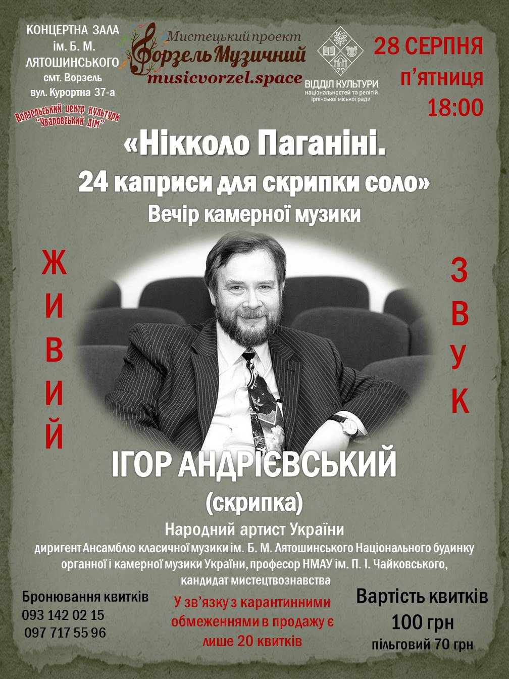 Вартість квитків 100 грн., пільговий 70 грн.